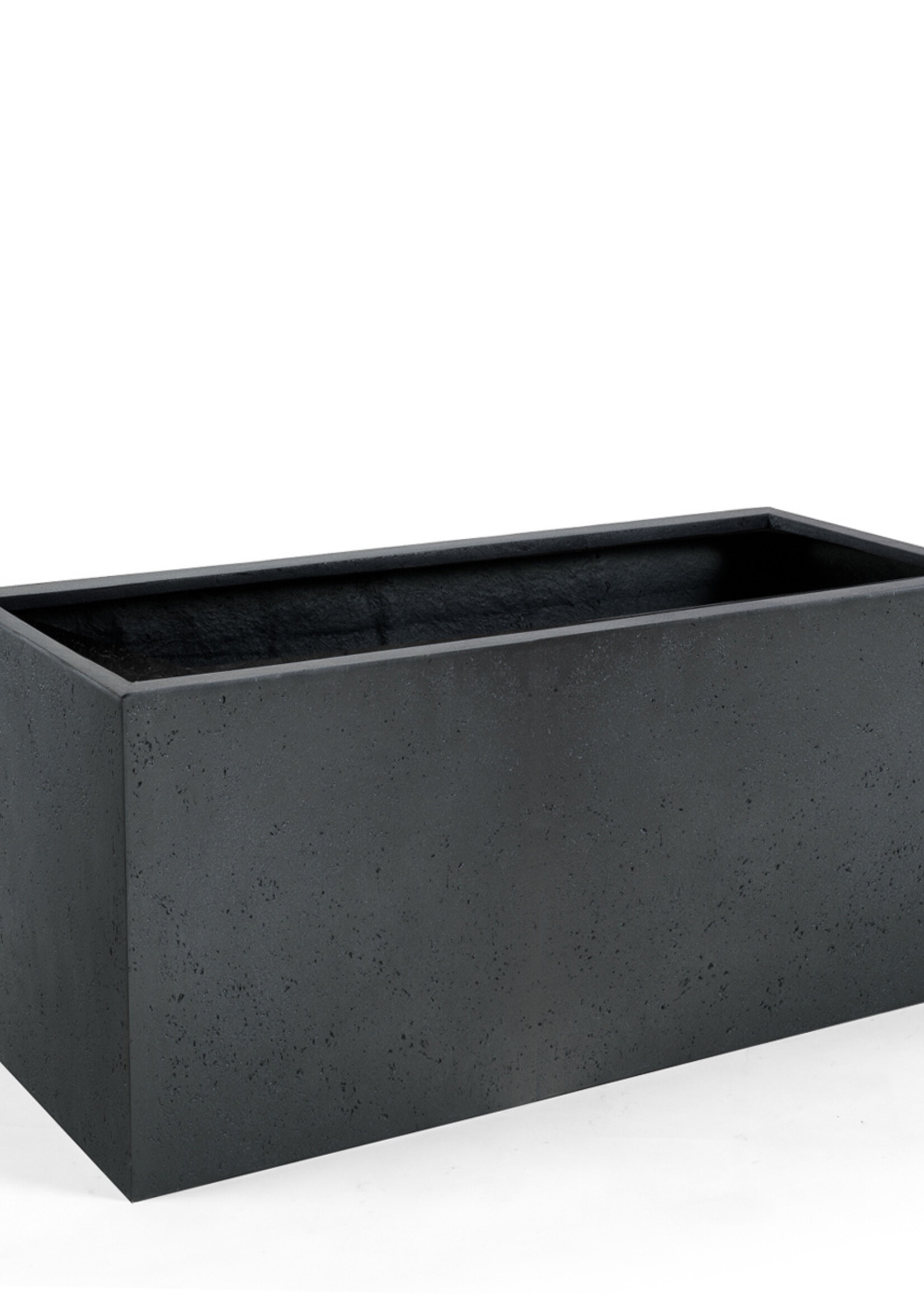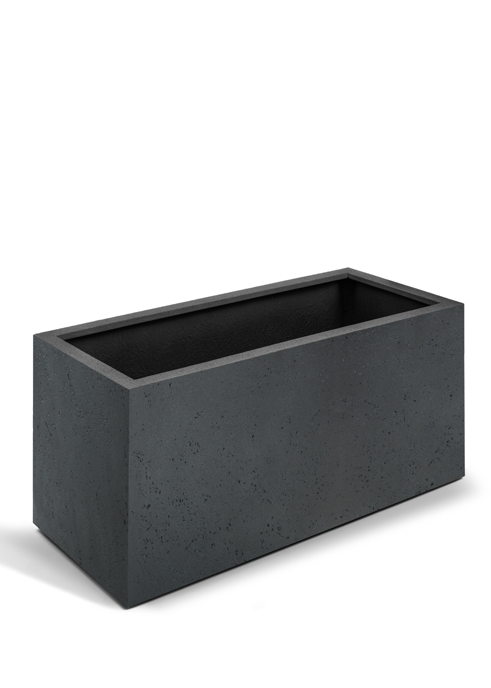 Die Grigio Box ist ein längliches Pflanzgefäß, das sich hervorragend als dezenter Raumteiler eignet. Durch seine geringe Höhe gewährt er selbst mit Bepflanzung auch im Sitzen noch freie Sicht. Erhältlich ist die vielseitige Grigio Box in zahlreichen verschiedenen Längen, was einen Einsatz in den diversesten Raumkonzepten möglich macht. Die Boxes können teils mit Rollen geliefert werden. Im anthrazit-farbenen Beton-Look wirkt die Box mit ihrer matten aber strukturierten Oberfläche dezent und edel zugleich.